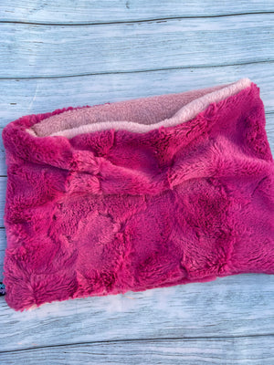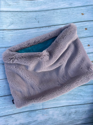 Handmade fleece snood with your choice of patterned outer and soft plain cuddle fleece lining. Warm, lightweight, and easy to wear – perfect for chilly walks or everyday cosiness.